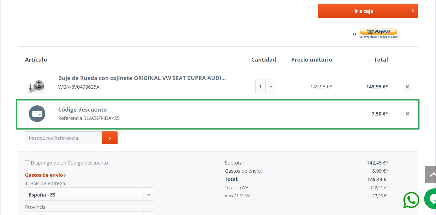 Los códigos descuento se introducen en la ventana de la 'Cesta o el Carrito de la compra' (antes de ir a Caja).